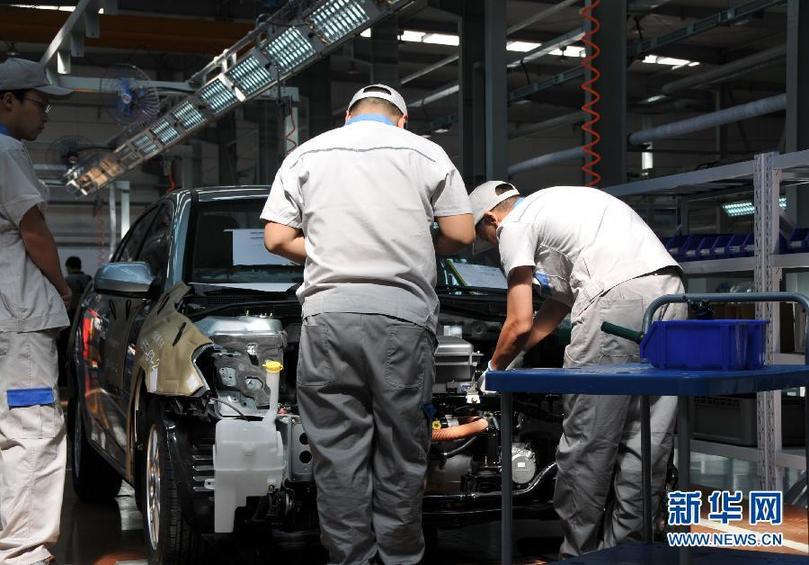 8月22日,技术人员在一汽新能源汽车分公司的生产车间工作。新华社记者宗巍摄