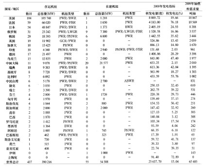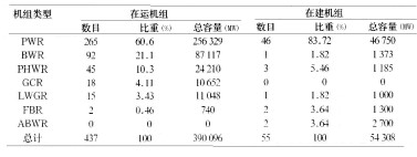 根据IAEA(国际原子能机构)官方统计数据,截至2009年12月31日,全球在运核电机组有437台,总容量390216MW,其中中国大陆11台,总容量9078MW;全球在建核电机组55台,总容量54308MW,其中中国大陆20台,总容量21577MW,占全球在建核电机组的40%。在运核电机组堆型有60.6%为压水堆,21.1%为沸水堆。IAEA统计数据还指出,2009年,中国大陆铀燃料需求量为2010吨,占全球铀燃料需求总量的3%。 2009年全球核电机组运行、建设情况(按机组类型统计)