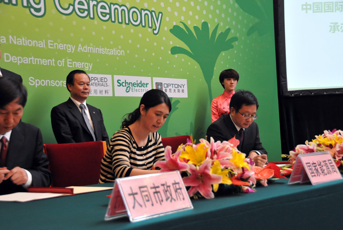 2011年9月21日,由国家能源局与美国能源部联合主办、北京大学承办的“2013年中国国际太阳能十项全能竞赛承办城市发布仪式”在北京钓鱼台国宾馆举办。国家发展改革委副主任、国家能源局局长刘铁男宣布山西省大同市为2013年中国首届SD竞赛的承办城市并举行授牌仪式。图为主办方、承办方、承办城市签署合作协议。赵丹摄 |