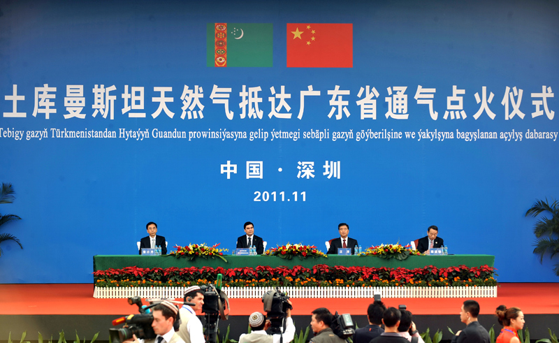 11月24日,土库曼斯坦天然气抵达广东省通气点火仪式在深圳主会场和广州分会场同时举行。 据中国石油天然气集团公司介绍,土库曼斯坦天然气经过中亚—中国和西气东输二线行程6811公里,已经抵达广州分输站,具备向广东地区供气条件。中亚—中国和西气东输二线是目前世界上最长的天然气管道,由土库曼斯坦阿姆河气田及配套设施、中亚天然气管道和西气东输二线三部分组成。这是通气点火仪式现场。 新华社记者 梁旭 摄 |