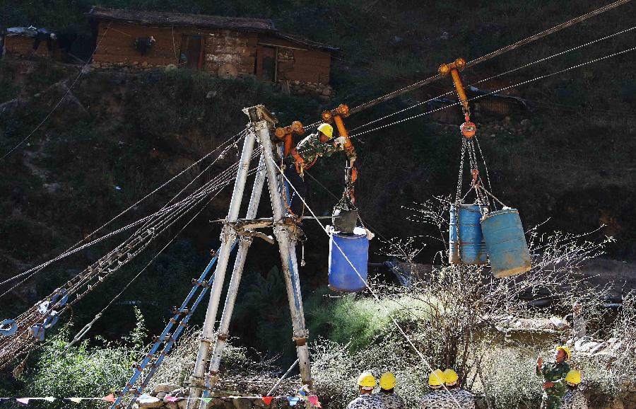 在工程西昌地区锦屏水电送出工程的地段山口,工程人员用索道将物资运进山,因为山路交通不便,生活、生产物资只能依靠索道运输(12月1日摄)。 当日,锦屏-苏南 800千伏特高压直流工程(以下简称锦苏工程)全面完成系统调试和试运行,正式投入商业运行。 锦苏工程是国家电网公司继特高压交流和直流示范工程成功之后,建成投运的第三个特高压输电工程,是目前世界上输送容量最大、送电距离最远、电压等级最高的直流输电工程,代表了当前世界直流输电技术的最高水平。工程承担着雅砻江流域官地、锦屏一、二级水电站和四川丰水期富余水电的送出任务。工程途经四川、云南、重庆、湖南、湖北、浙江、安徽、江苏八省市,线路全长2059公里,额定电压±800千伏,额定输送功率720万千瓦,总投资220亿元。工程自6月13日低端直流调试送电至11月28日已累计送电35亿千瓦时,有力保证了官地、锦屏电站水电机组和汛期四川富余水电的及时顺利外送,有效缓解了今年江苏和华东地区迎峰度夏期间用电紧张局面。工程全面投运后,每年可向华东地区输送电量约360亿千瓦时,相当于节约原煤1680万吨,并减少排放二氧化碳3240万吨,对于解决四川电力“丰余枯缺”的结构性矛盾,满足东部地区经济社会持续发展用电需求,缓解日益严峻的生态环境问题,具有重大的综合效益。新华社发(李方宇 摄) |