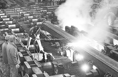 图为东北特钢集团大连基地生产的合金钢大方坯正在下线。刘德斌/CFP