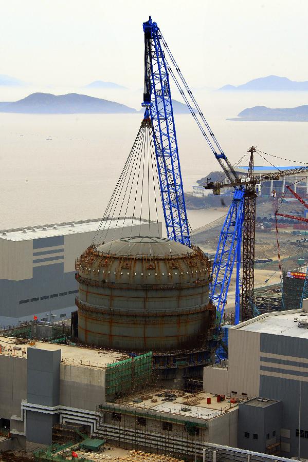 1月29日,在浙江台州三门县在建核电站,1号机组完成安全壳封顶。 当日,三门核电AP1000三代核电1号机组钢制安全壳顺利封顶,这标志着1号核岛主要设备和模块已基本引入完毕,核岛施工进入全面安装阶段。三门核电工程位于浙江省台州市三门县健跳镇的猫头山半岛上,三面环海,是国务院于2004年7月21日批准实施的首个核电自主化依托项目,同时也是当时中美两国最大的能源合作项目,引进美国西屋开发的第三代先进压水堆核电(AP1000)技术。新华社发 |