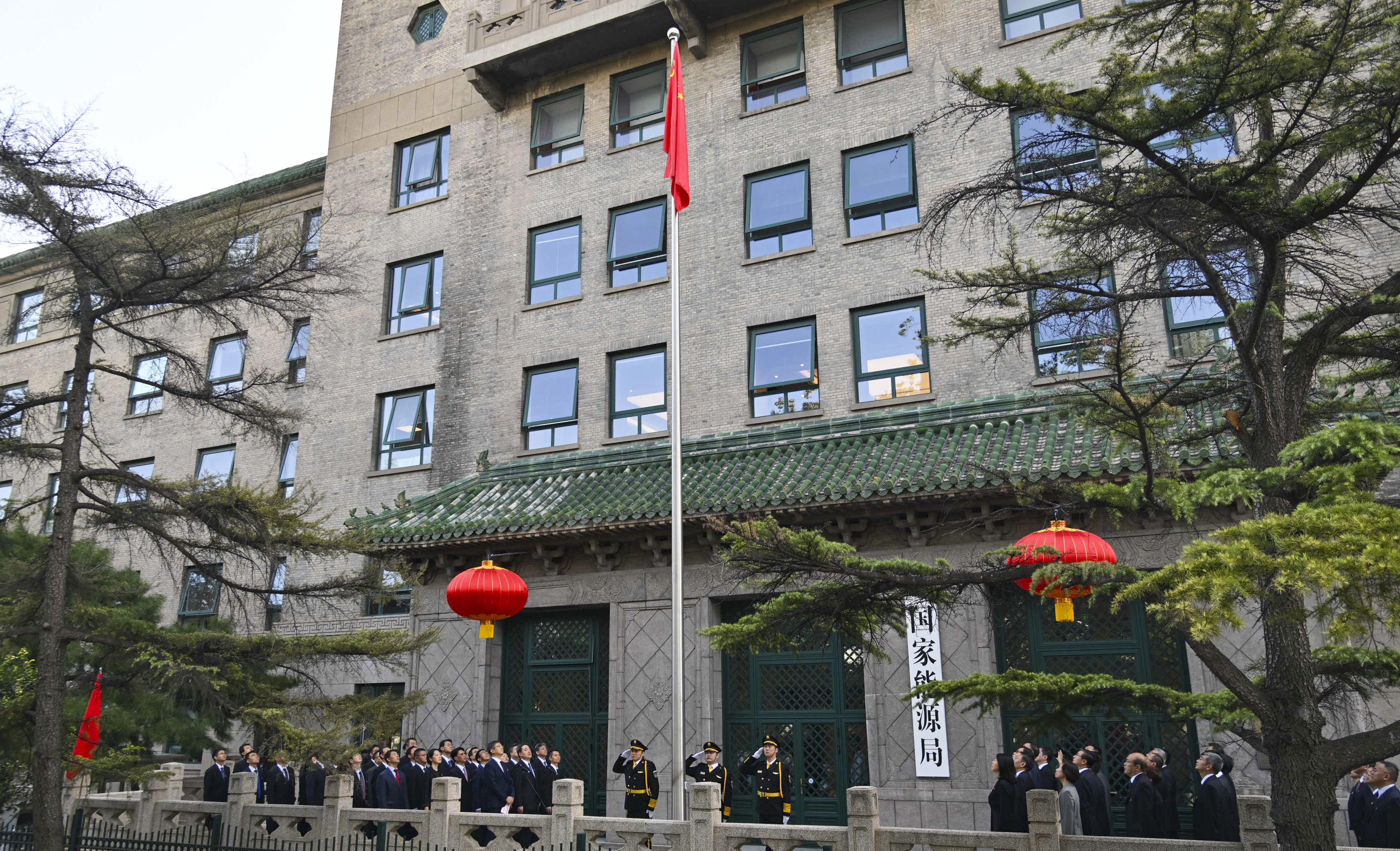 国家能源局机关各司、在京直属事业单位、华北能源监管局、中能传媒干部职工代表等80余人参加了升国旗仪式。