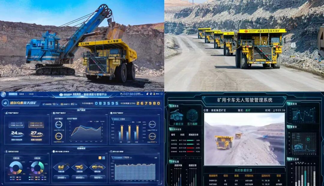 数智化建设是提升煤矿安全生产水平和生产效率的有效手段。该项成果面向存量露天煤矿矿卡开展无人化改造,攻克了超大吨位矿卡精准线控、复杂地形精准导航、多厂商设备兼容协同、极端工况安全防控等关键技术装备,填补了特大型露天矿300吨级矿卡规模化无人驾驶运输技术空白。成果在多个年产3000万吨以上特大型露天煤矿应用,有力支撑传统矿山数智化升级。