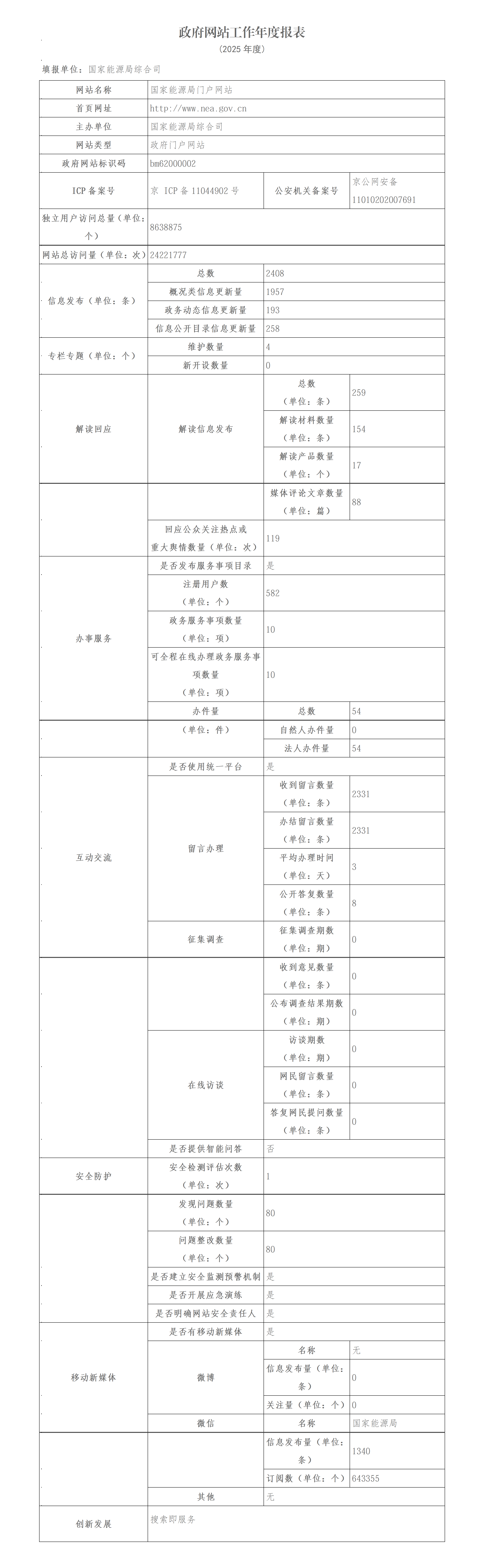 国家能源局2025年政府网站工作年度报表